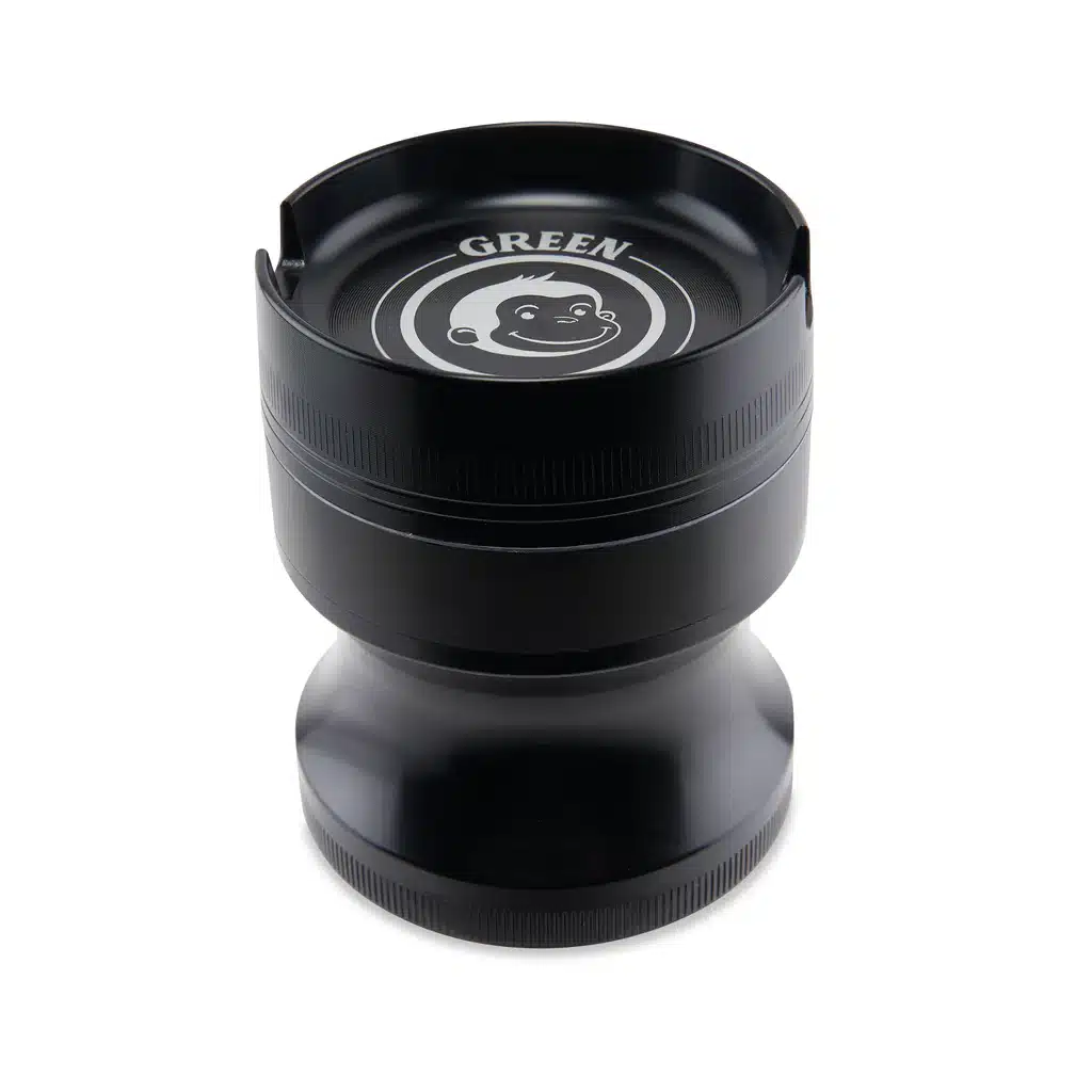 The Green Monkey Grinders Chacma - 63mm isn't just for grinding herbs; it can also be used for grinding spices and nuts. This makes the grinder incredibly versatile and perfect for anyone who needs to grind multiple things. It has an innovative design where the top layer has two grooves to rest a lit smoke, and the lid can be used as an ashtray.